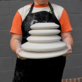 So what exactly is a Hydro-Bat Hump Mold? The Hydro-Bat Hump Mold is a bat that you attach to your wheel-head and use while throwing. The mold attaches to the wheel with two rubber grommets embedded into the underside of the hydro-stone. After placing the hump mold on the wheel simply lay a slab on top of the hump mold. So think of it as throwing the backside of a form. You will still have to throw a foot by gathering clay from the slab or by attaching a coil and compressing it to the back. Hydro-Bat Hump molds allow beginners and professionals to consistently make forms with ease. We have a variety of forms and profiles within those forms. Just because these hump molds were designed to fit on the pottery wheel, doesn't mean you have to use them that way, they make great hand-building molds as well.