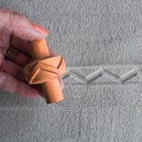 The designs on all MKM stamps have a bevelled edge, which makes imprinting and removing easy and precise. The oiled wood is also ideal because it minimizes the degree to which the clay sticks to the stamp.